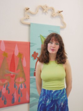 In haar serie “Druppels op het stapelbed” onderzoekt Renske de Jong maatschappelijke ideeën over vrouwelijkheid. Ze stelt traditionele rollen ter discussie zonder ze direct te bekritiseren. Met behulp van materialen, kleuren en symboliek brengt de Jong de complexiteit van vrouwelijkheid in beeld. Haar gedetailleerde werken dagen kijkers uit om verder te kijken dan stereotypen en een nieuwe vorm van vooropgezette ideeën te ontdekken. Haar kunst biedt een ruimte om vrouwelijkheid opnieuw te onderzoeken en definiëren.
