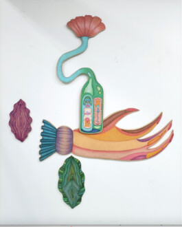 Jury: “Renske de Jong’s flashy fingers and glossy long nails seem to show us the way to her installation with objects and drawings. Everything seems to point out a colourful female body, sweet and attractive, but take care … there might be a layer of a different kind in the work.”
